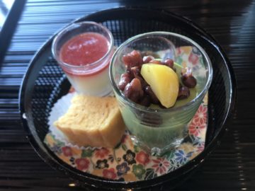 香港風焼、トビコと海老の蒸し餃子、海老蒸し餃子、ニラ入り焼き餅、コーンスープ、ココナッツ蒸し団子、胡麻団子、五目揚げ餅、エッグタルト、蒸し焼き焼売まんじゅう、マレーシア風蒸しカステラ、杏仁豆腐、豆乳抹茶プリン、マンゴープリン、ライチシャーベット、季節のフルーツ