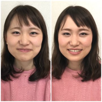 レッスン後はシャープな小顔になりましたね 。アイメイクもチークもリップもベースがキレイだからこそ映えるのです。使うファンデーションの量が少ないのに肌がキレイに見えるのでびっくりする方多いです。
