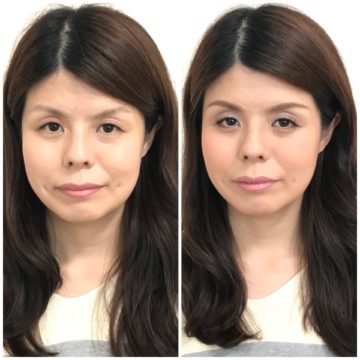 彫りの深い目元の骨格を生かしたアイメイクを中心にレッスン。顔全体にもメリハリが出て引き締まりました。